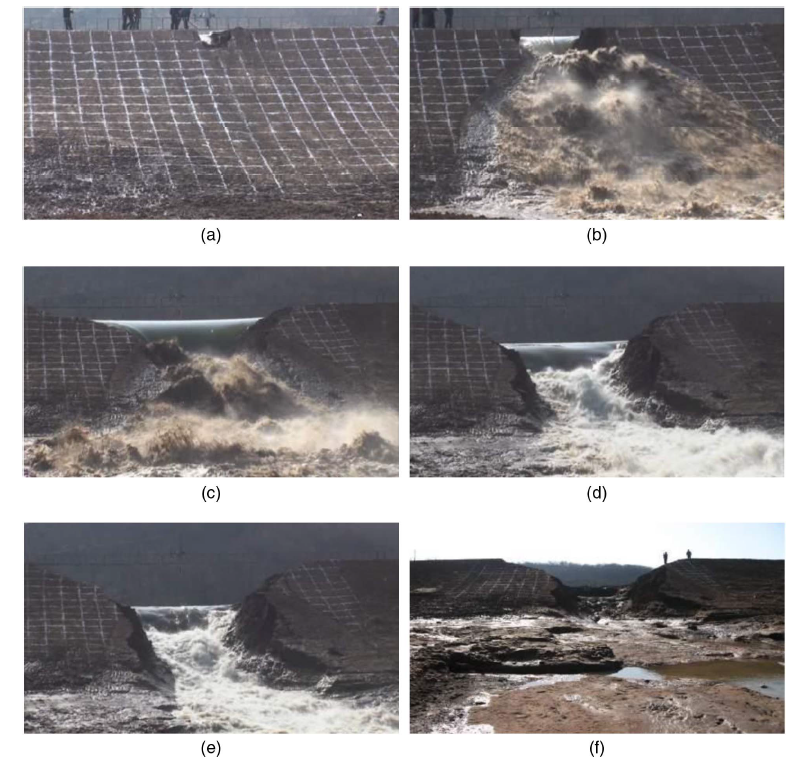 Content: Sand–gravel embankment dams are widely used because of their high stiffness and low porosity, but they are vulnerable to overtopping caused by floods, landslides, or surge waves, which may lead to breaching. This study conducted overtopping experiments on dams without an upstream face slab under three different initial seepage conditions to investigate breach development. The results indicate that the breaching process progresses through downstream slope erosion, gully formation, rapid breach enlargement, and final stabilization. A higher phreatic line and larger saturated zone accelerate breach expansion, increase peak discharge, and shorten breach duration, whereas a drainage zone helps mitigate and control the breaching process.