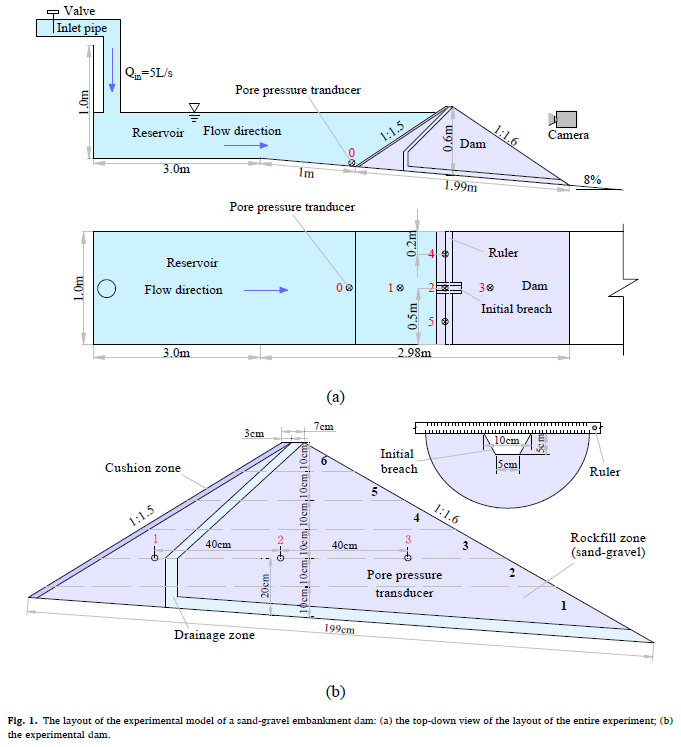 Title: A study of the overtopping breach of a sand-gravel embankment dam using experimental models